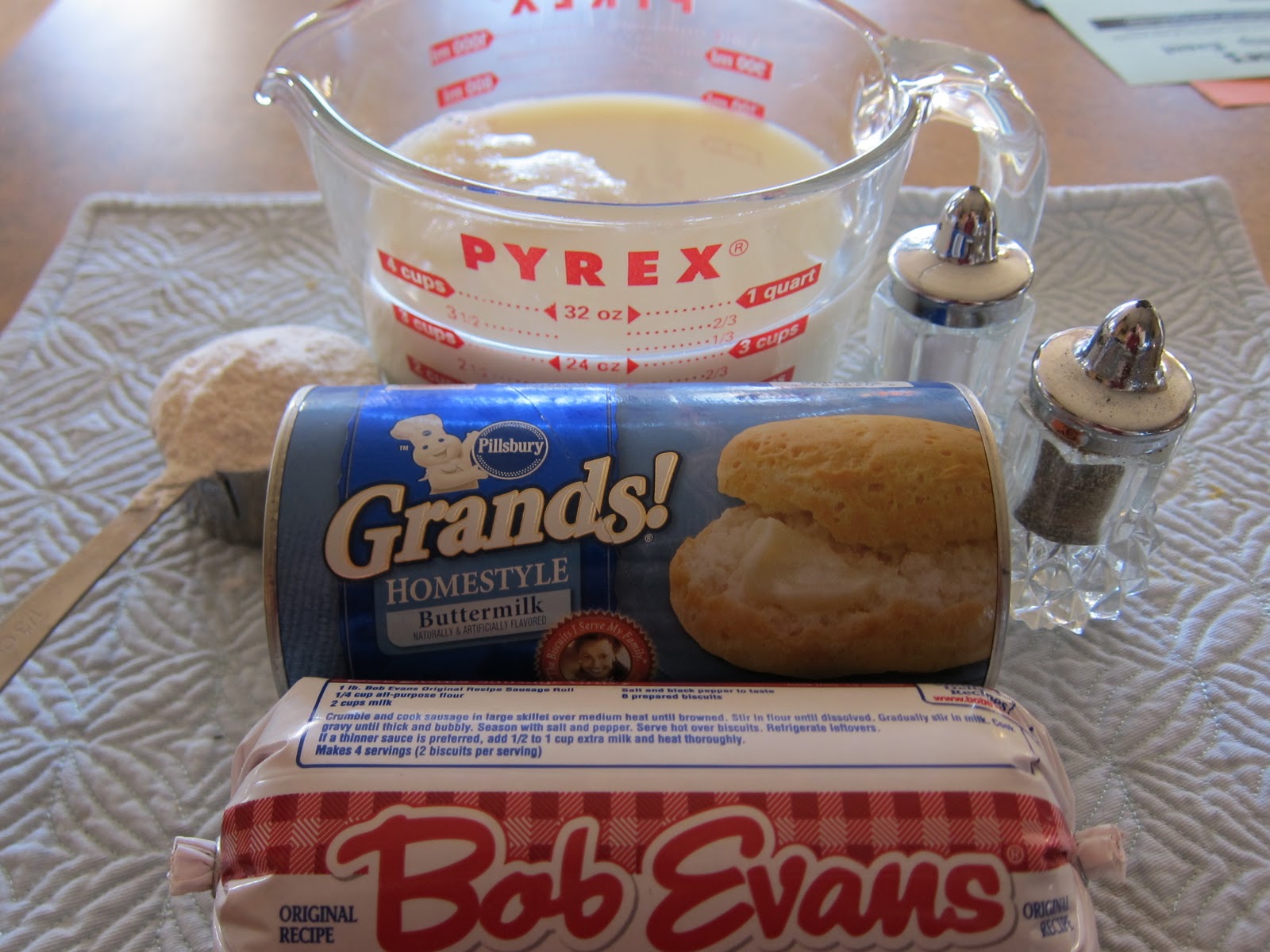 Biscuits, sausage, milk, flour, salt and pepper
