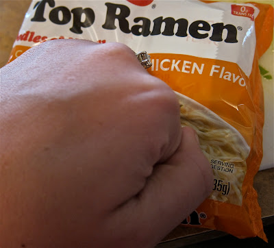 2 pkgs uncooked  and broken Ramen Noodles (discard flavor packet)