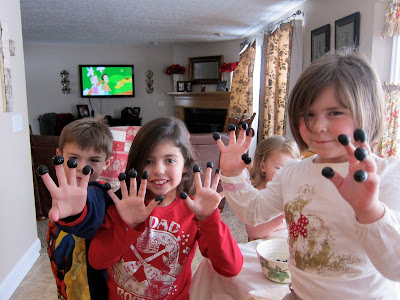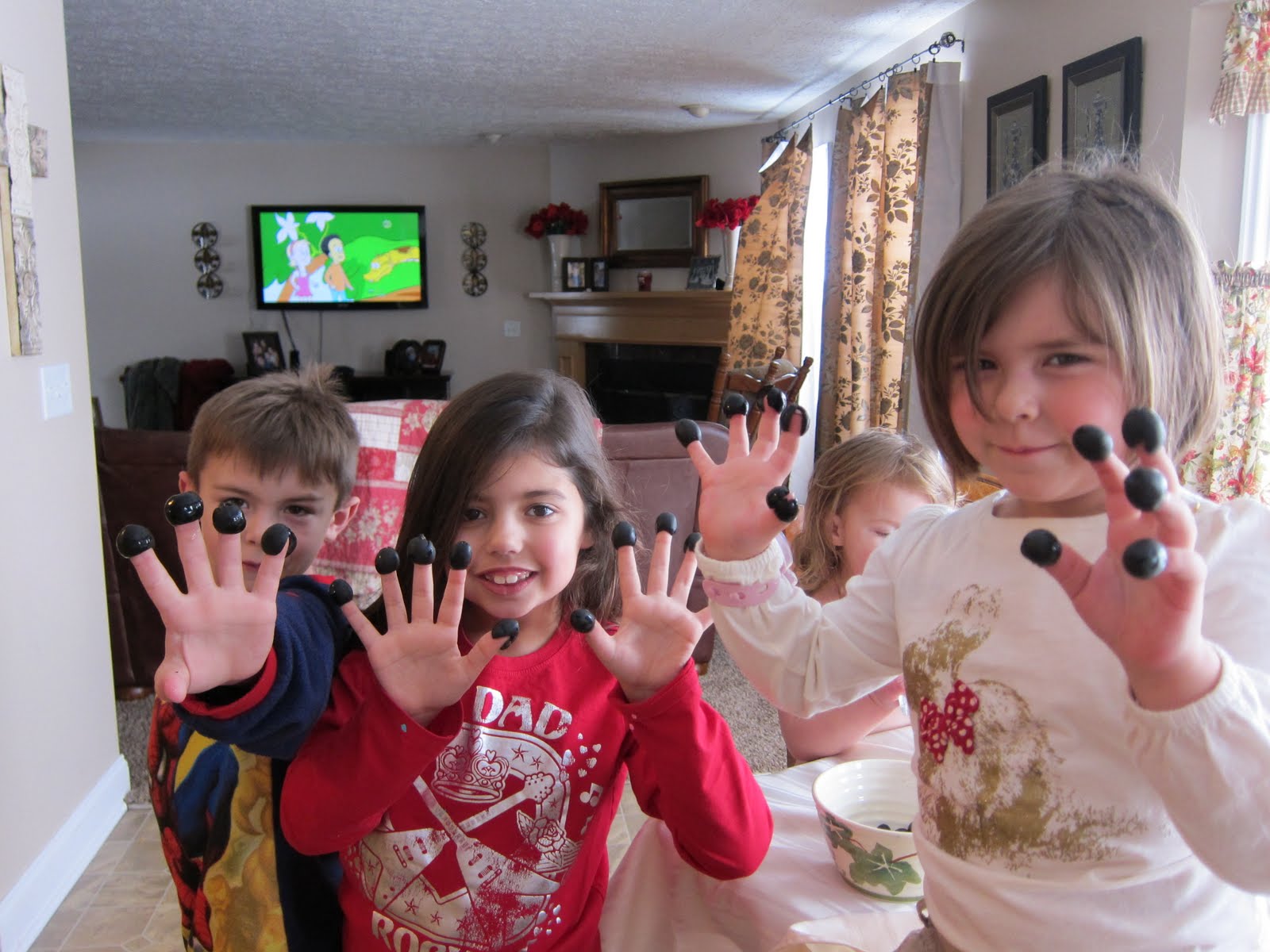 My children and more friends with “olive fingers”.