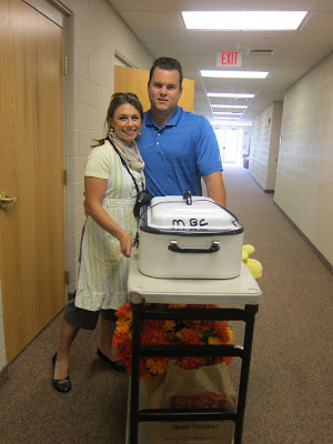 Me and my sweet hubby bringing in food for the church