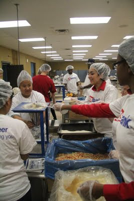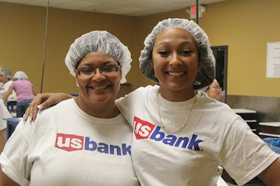 Volunteers package the meals in 2 hour packaging sessions. Many churches, individuals, businesses and both Christian & public school groups participate. The day I visited a group of summer interns from US Bank were volunteering.