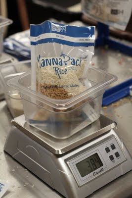 After ingredients are packaged they are weighed.